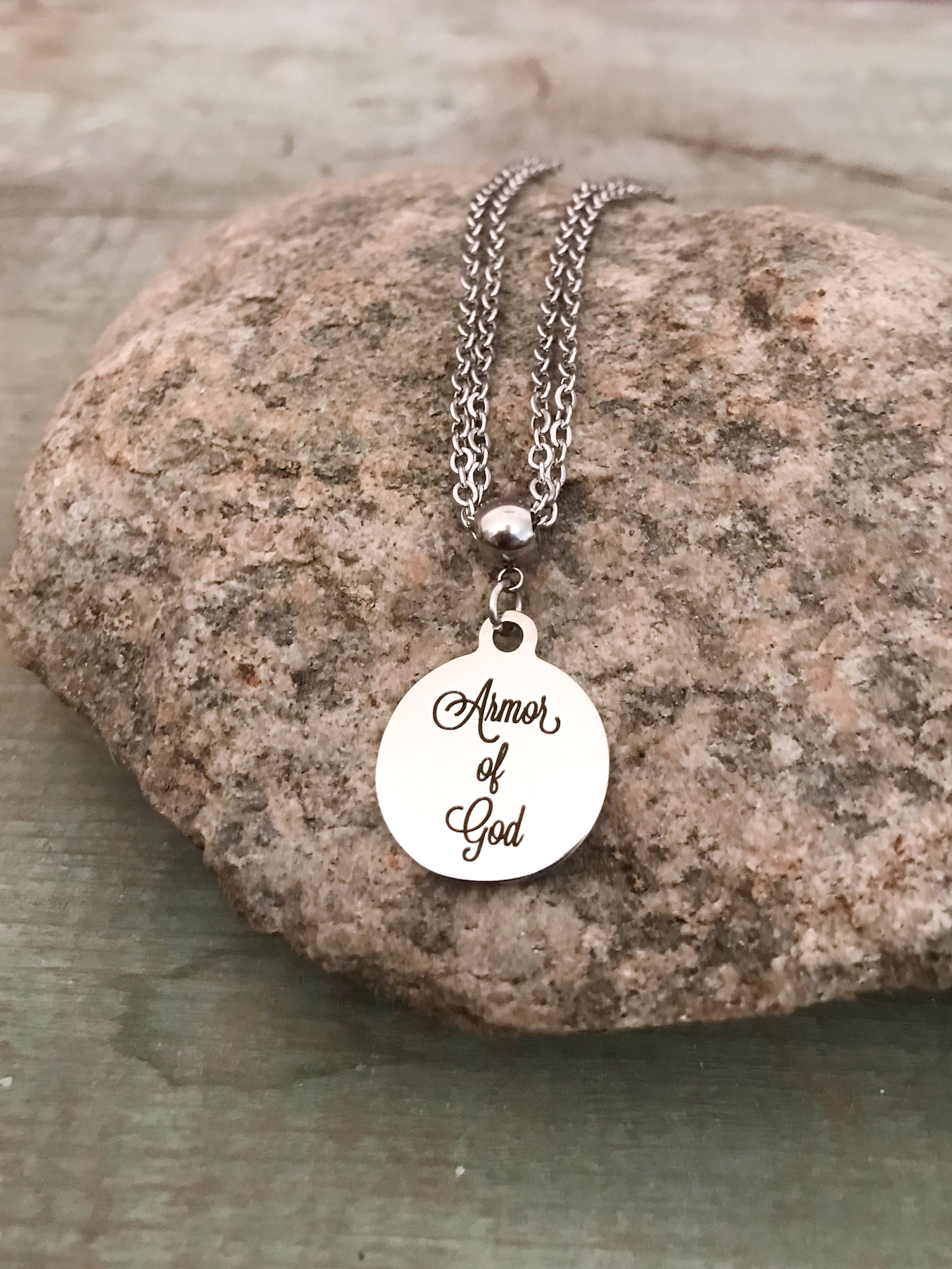 We offer necklaces, bracelets and five styles of zipper pulls/purse jewelry that show the Armor of God charms. These are great daily reminders to put on God’s Armor.